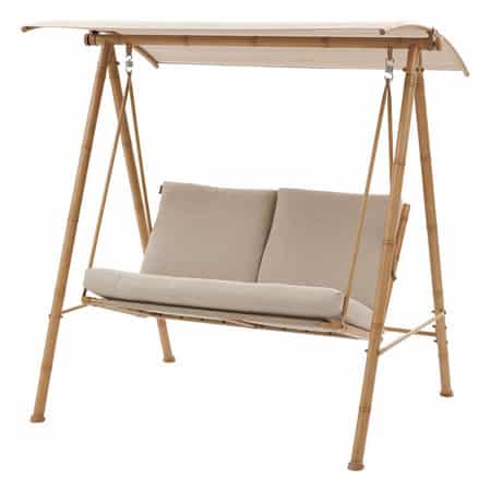 Estructura, respaldo y asiento en acero acabado con imitación en madera de bambú.